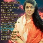 ಪ್ರಿಯರೆ, " ಕಲಿಯುಗದ ಬಹುನಿರೀಕ್ಷಿತ ಕ್ಷಣವಿನ್ನು ದೂರವಿಲ್ಲ, ದೈವತ್ವದ ಸತ್ಯದಲ್ಲಿ ಒಂದಾದ ಎಲ್ಲಾ ಮಹಾತ್ಮರು ಒಂದೇ ಸೂರಿನಡಿಯಲ್ಲಿ ಬರುತ್ತಾರೆ...